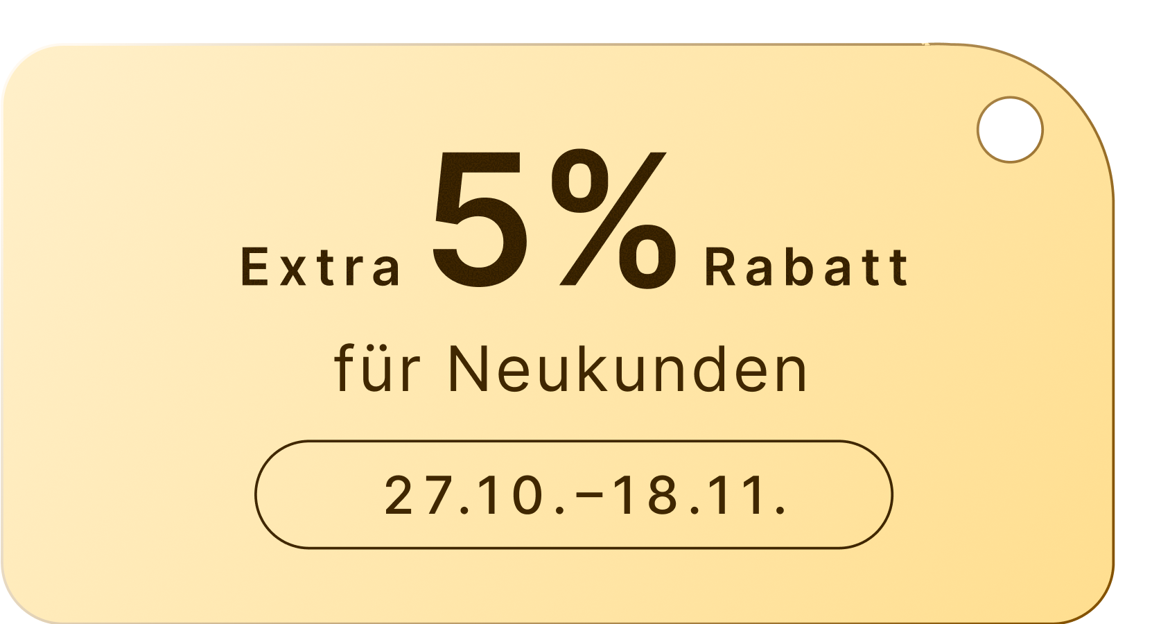 Zeitraum: Neue Nutzer, die sich zwischen dem 27. Oktober und 18. November 2025 registrieren, erhalten zusätzlich 5 % Rabatt. (Dieses Angebot gilt nur vom 27. Oktober bis 18. November.)