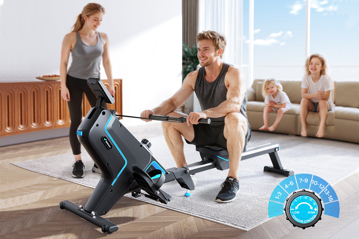 16 einstellbare Widerstandsstufen passen sich den unterschiedlichen Trainingsbedürfnissen aller Familienmitglieder an.