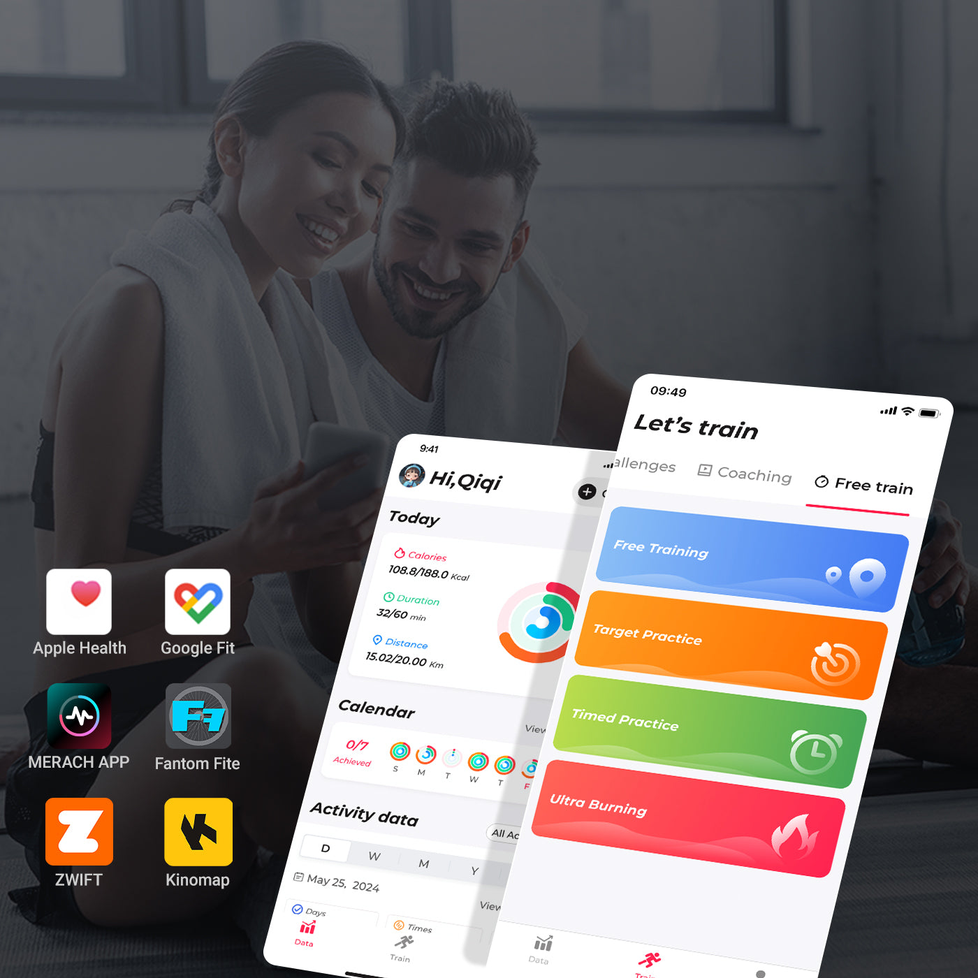Merach, Kinomap, Zwift, Apple Health, Google Fit, Fanton Fite (By Merach)