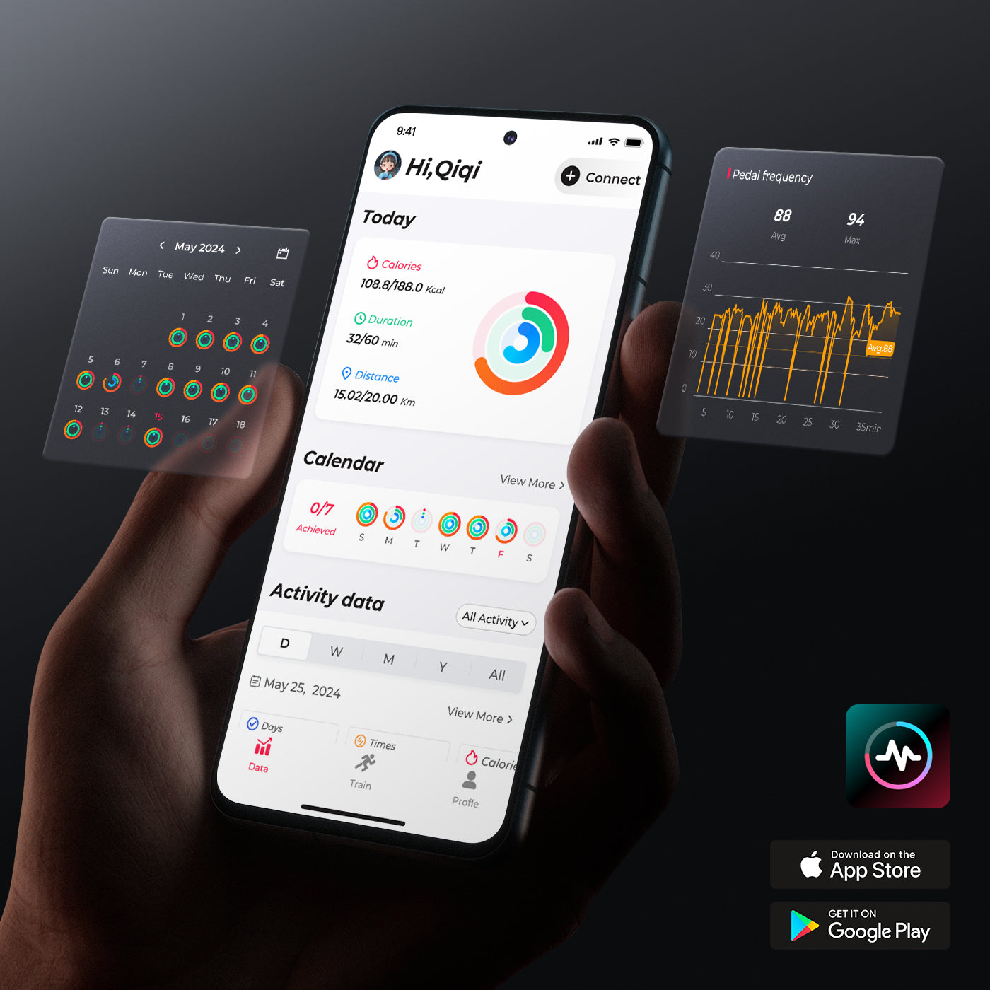 Die Merach App verbindet sich via Bluetooth, um Ruderdaten, Trainingsfortschritte und Kalorienverbrauch in Echtzeit zu tracken.