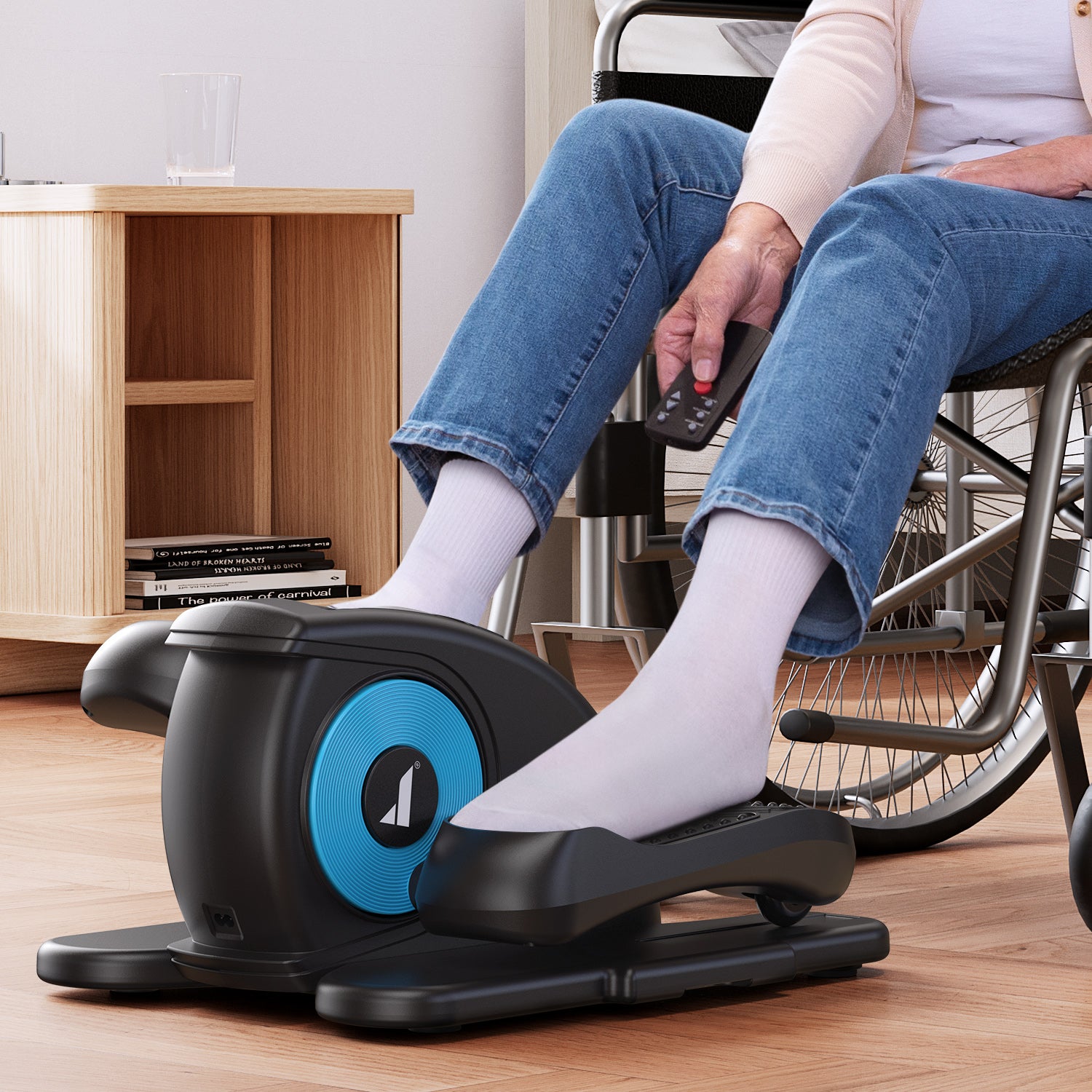 The Merach under desk elliptical trainer features a low intensity and no pressure design that promotes blood circulation, burns calories, strengthens lower body muscles and helps prevent leg diseases. It is the perfect seated elliptical leg exercise machine for seniors, sedentary office workers and those in leg rehabilitation.