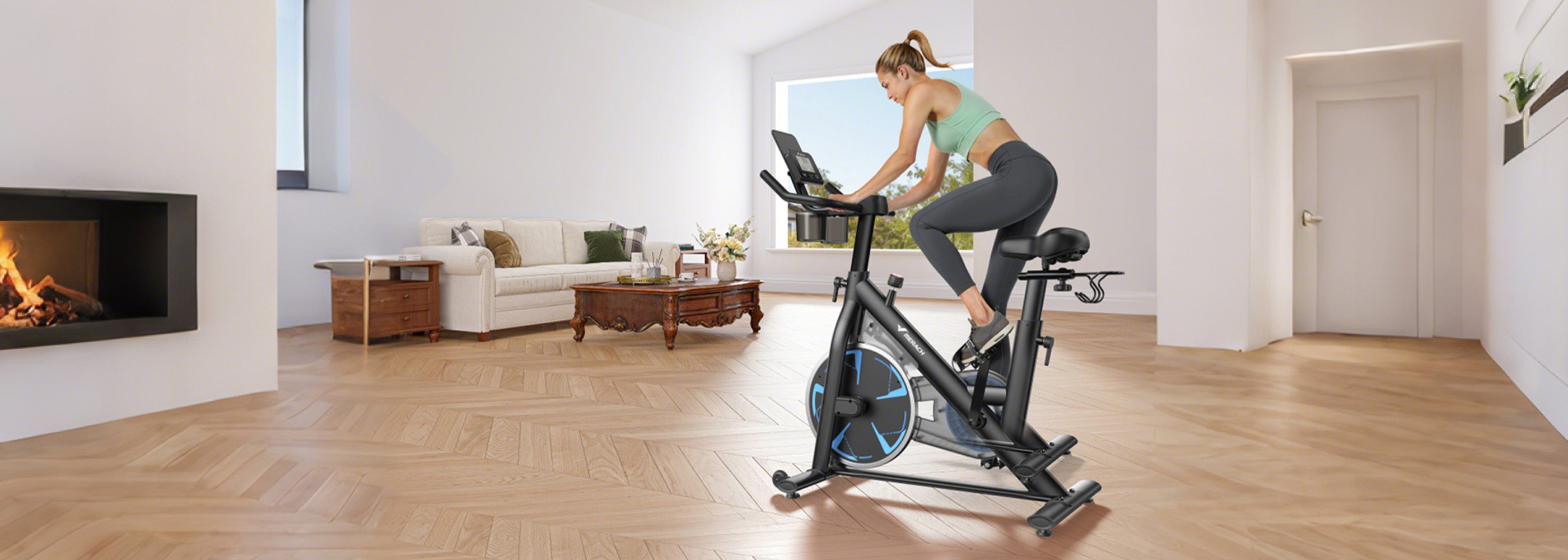 Das S36 Heimtrainer verfügt über einen verstärkten Doppel-Dreiecksrahmen, der bis zu 150 kg trägt. Das verstärkte Design minimiert Vibrationen und ist für Fahrer aller Größen geeignet.