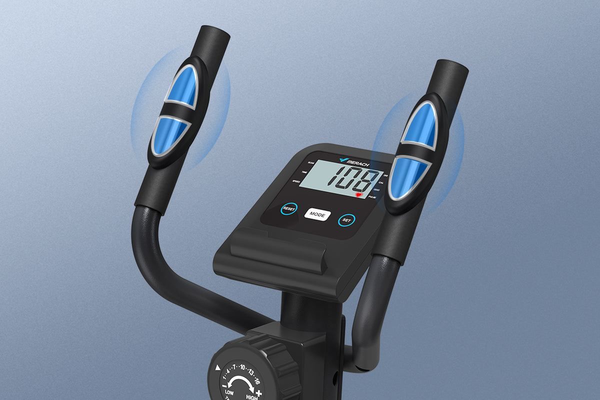 The LCD display allows you to track your workout data in real time, including time, speed, distance, calories, heart rate and odometer. A pulse sensor is integrated into the fixed handle of the cross trainer to monitor heart rate.