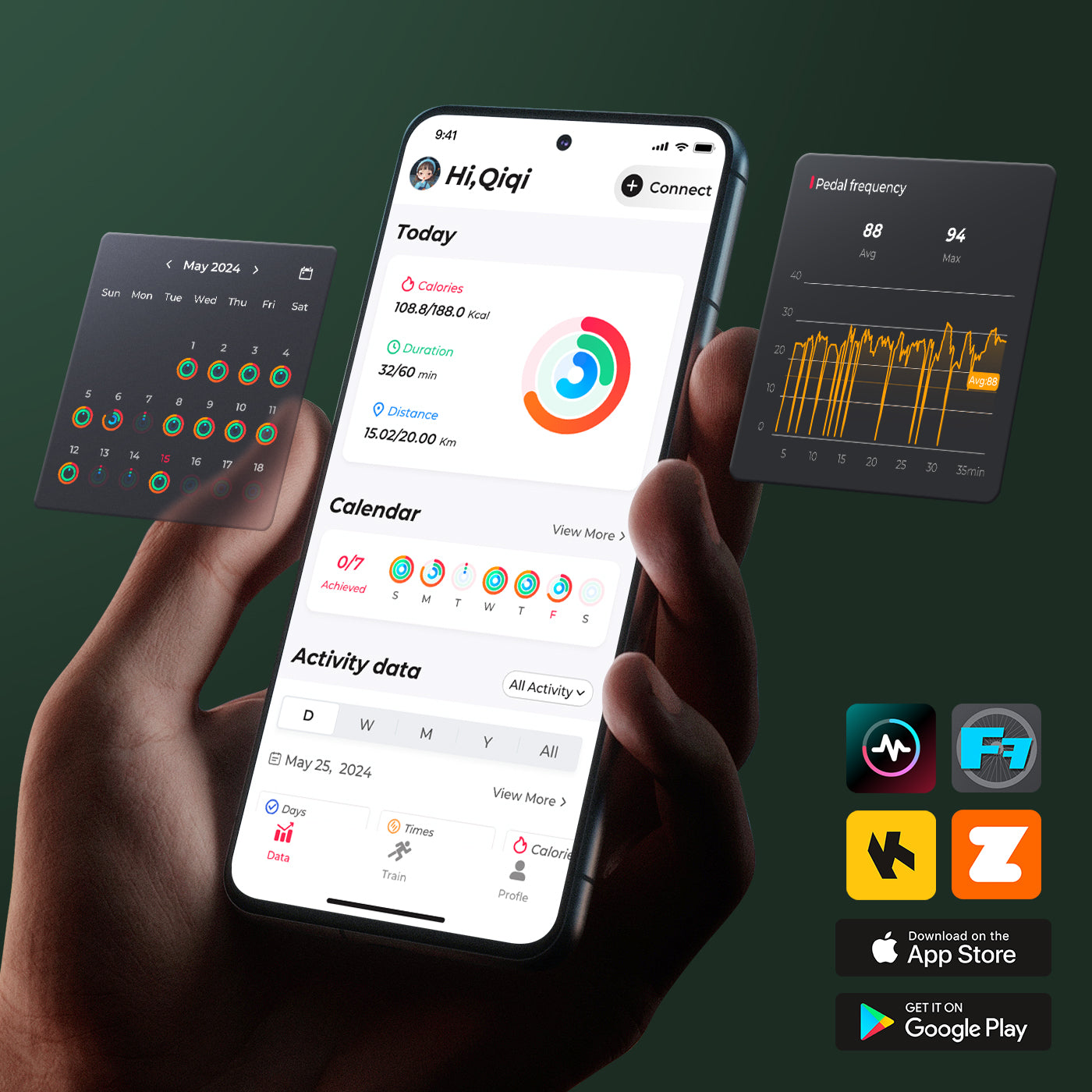Merach, Kinomap, Zwift, Apple Health, Google Fit, Fanton Fite (By Merach)