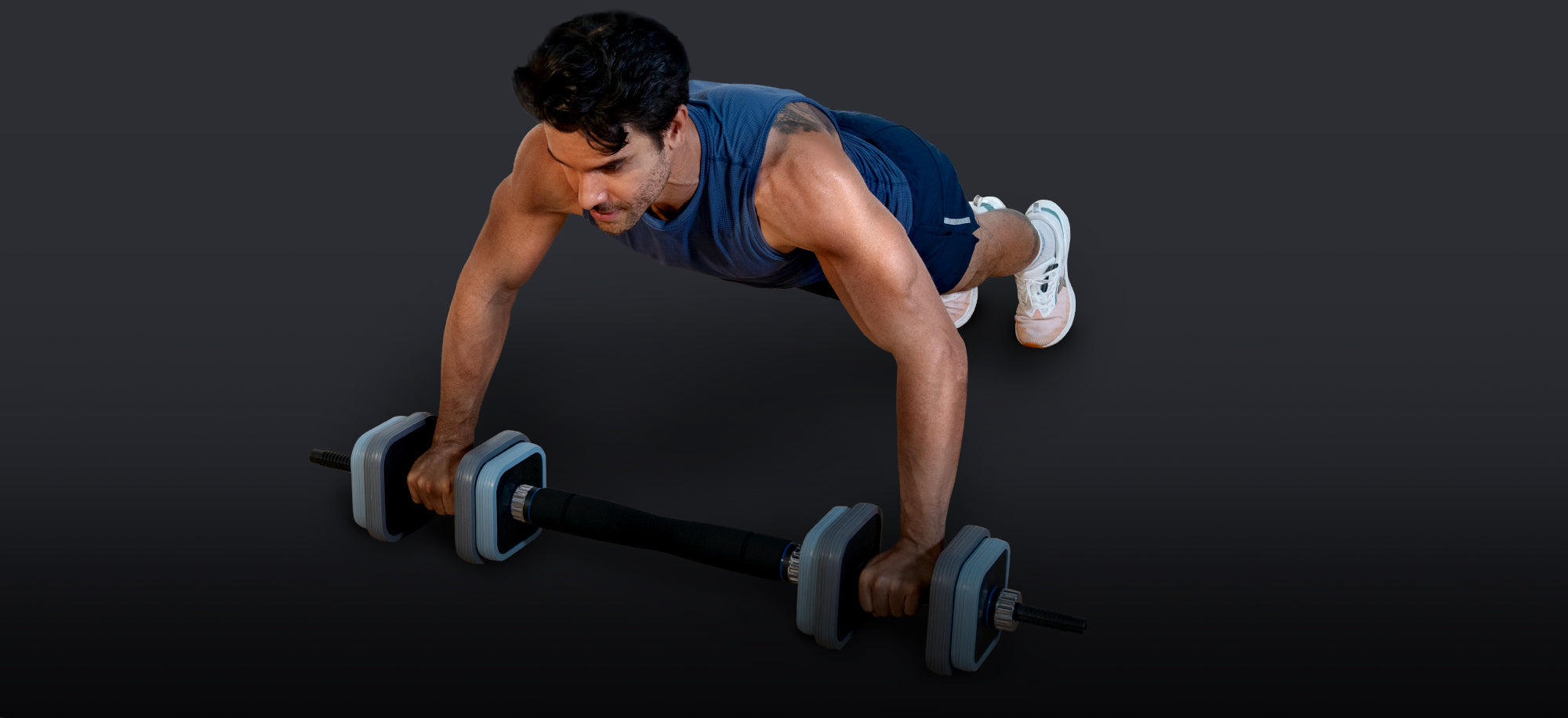 - 3-in-1: Kurzhantel, Langhantel, Liegestützgriff