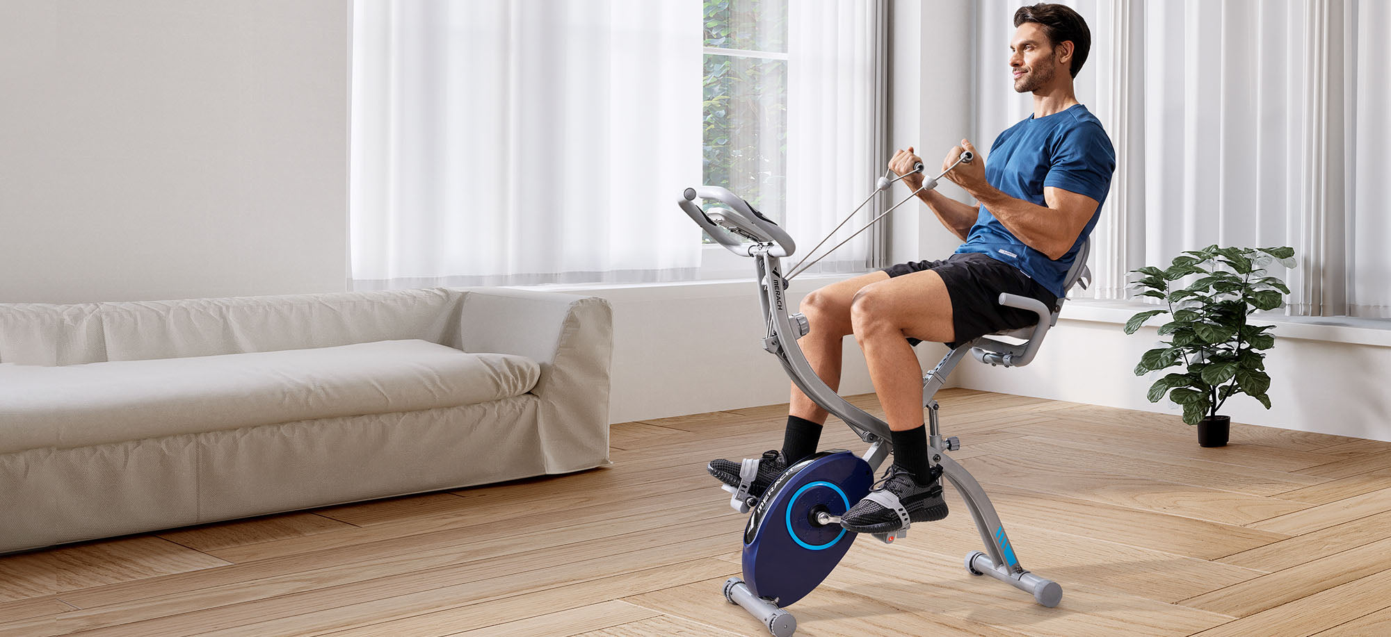 Dieses innovative, faltbare Design bietet aufrechte und liegende Fahrmodi sowie Arm- und Rückentraining.