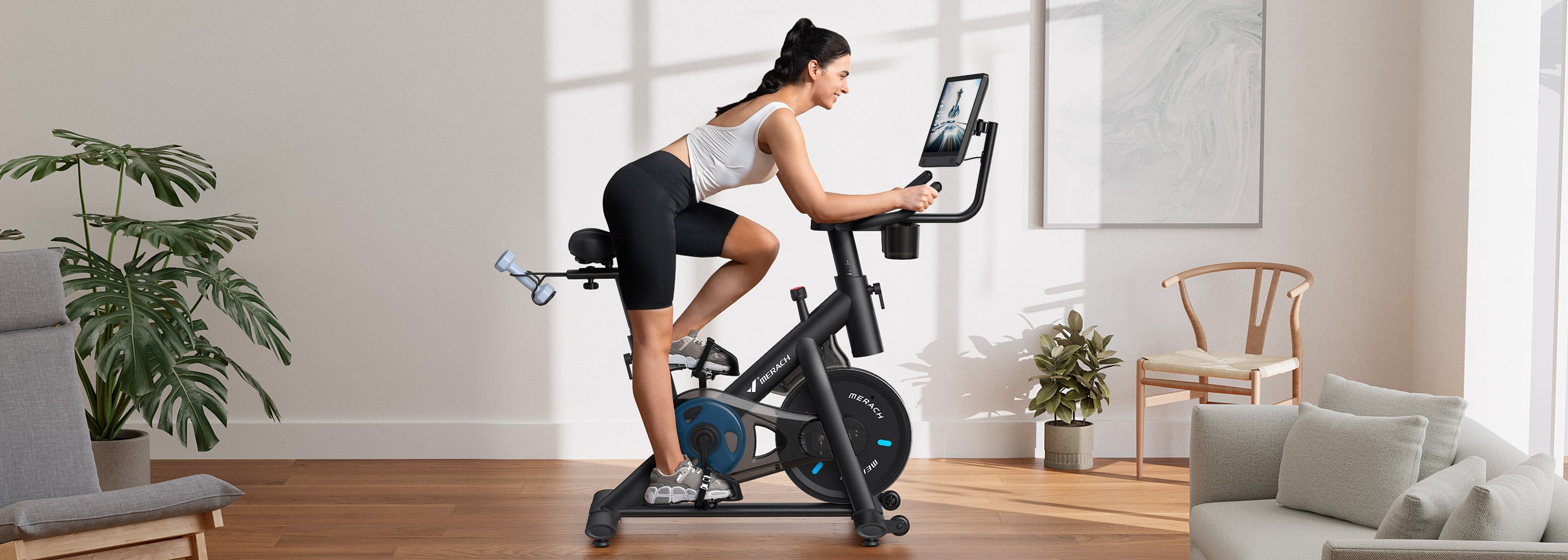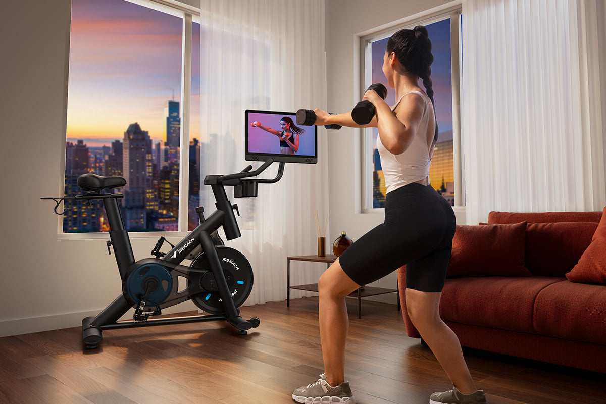 Merach bietet spielerische Übungs- und Landschaftskurse, um die Motivation für das Training zu erhöhen. Die Benutzer können während des Trainings auch Echtzeit-Trainingsdaten wie Distanz, Zeit, Kalorien, Kilometerzähler, Geschwindigkeit, Rhythmus und Widerstandsgrad kontrollieren.
