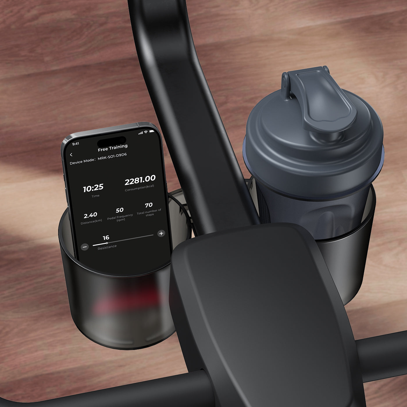 Ausgestattet mit einer Hantelablage für einfache Lagerung, einem Wasserflaschenhalter für einfaches Trinken.