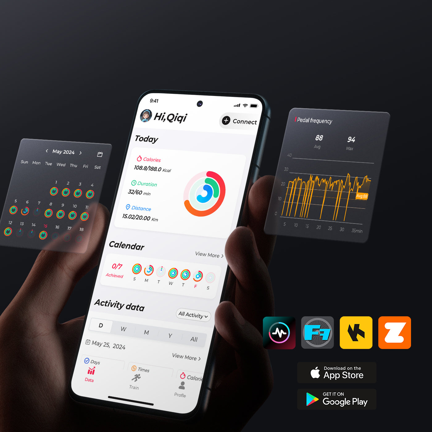 Merach, Kinomap, Zwift, Apple Health, Google Fit, Fanton Fite (By Merach)