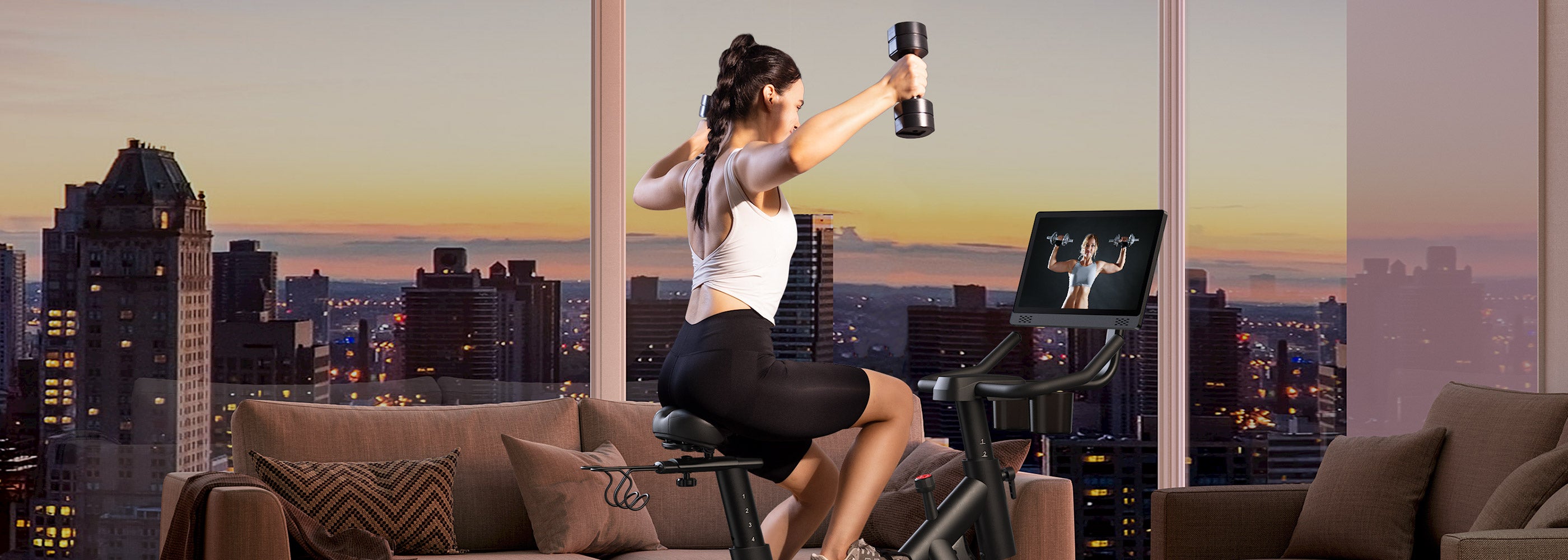 Neigen und schwenken Sie das Display, um Ihr HIIT-Training aus jedem Blickwinkel zu verfolgen – egal, ob Sie auf oder neben dem Bike sind.