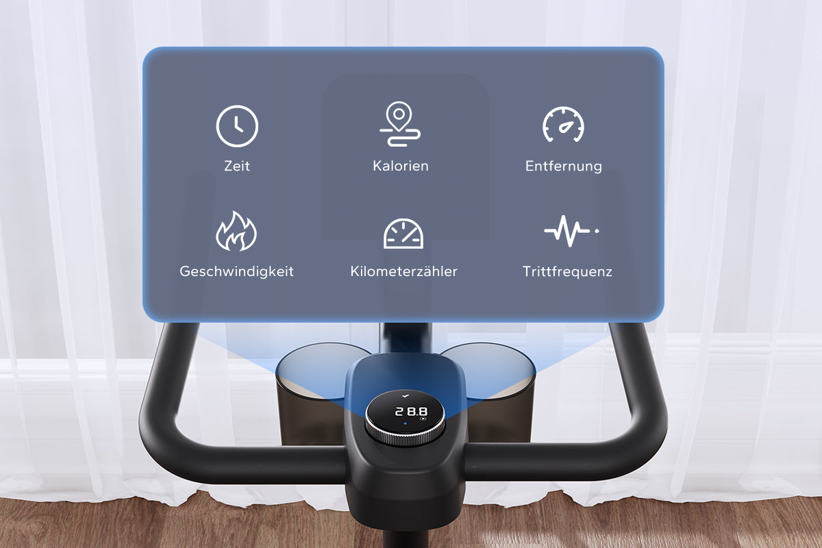 - LCD-Datenmonitor: Zeit, Geschwindigkeit, Entfernung und Kalorien