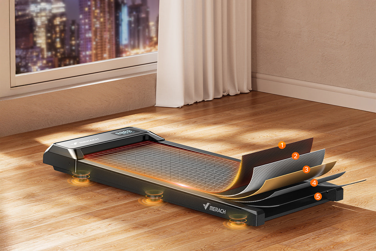 Das faltbare Laufband besteht aus einem 5-lagigen Laufband und 6 stoßdämpfenden Silikonsäulen, die Ihre Knie und Knöchel vollständig schützen.